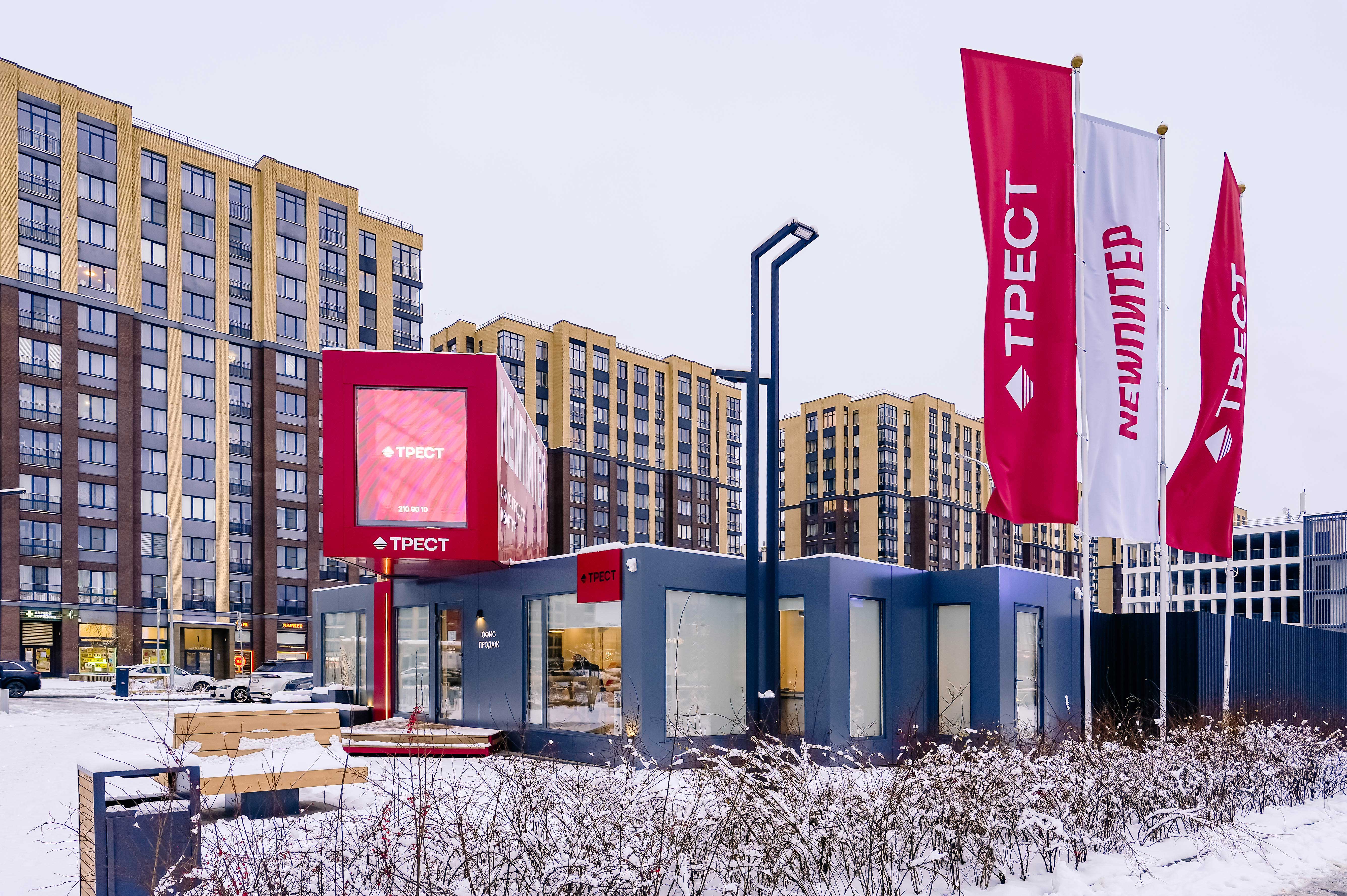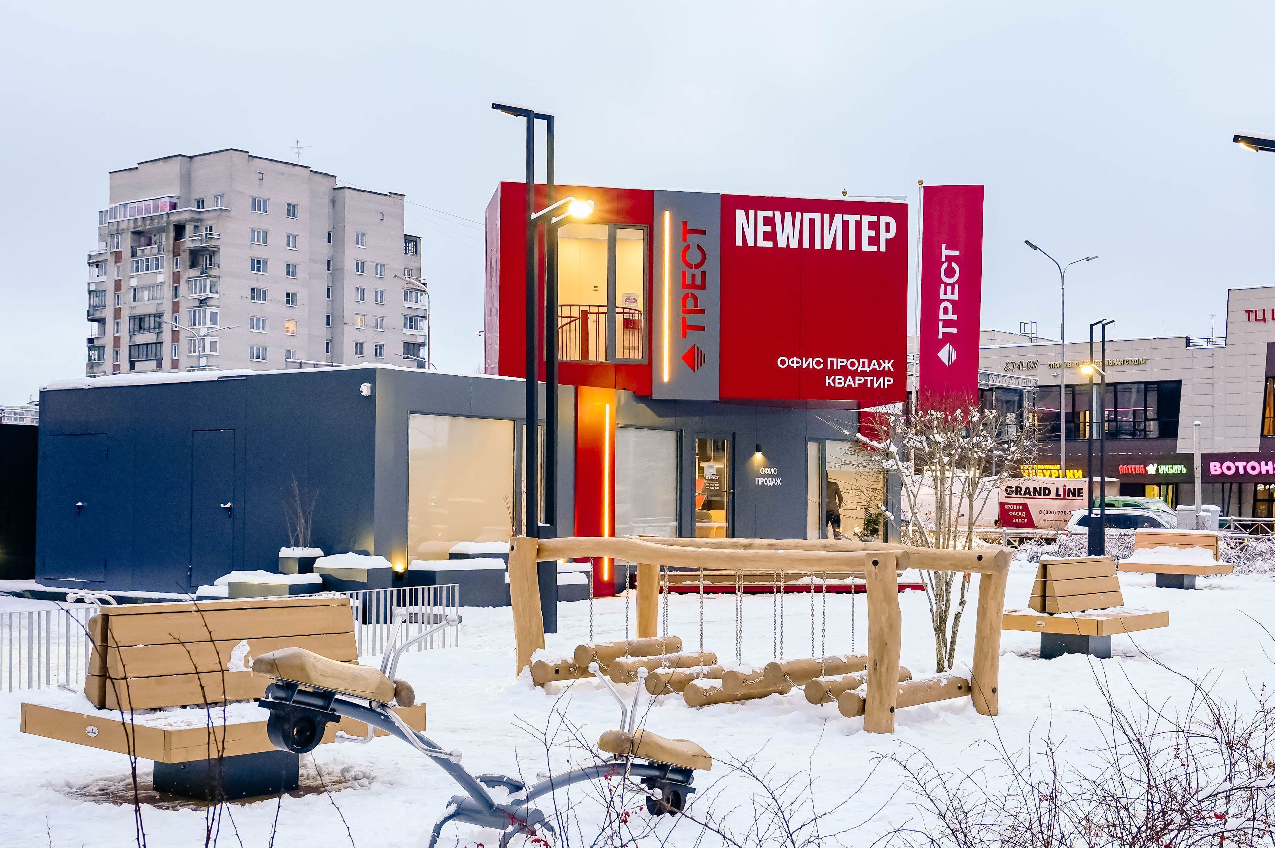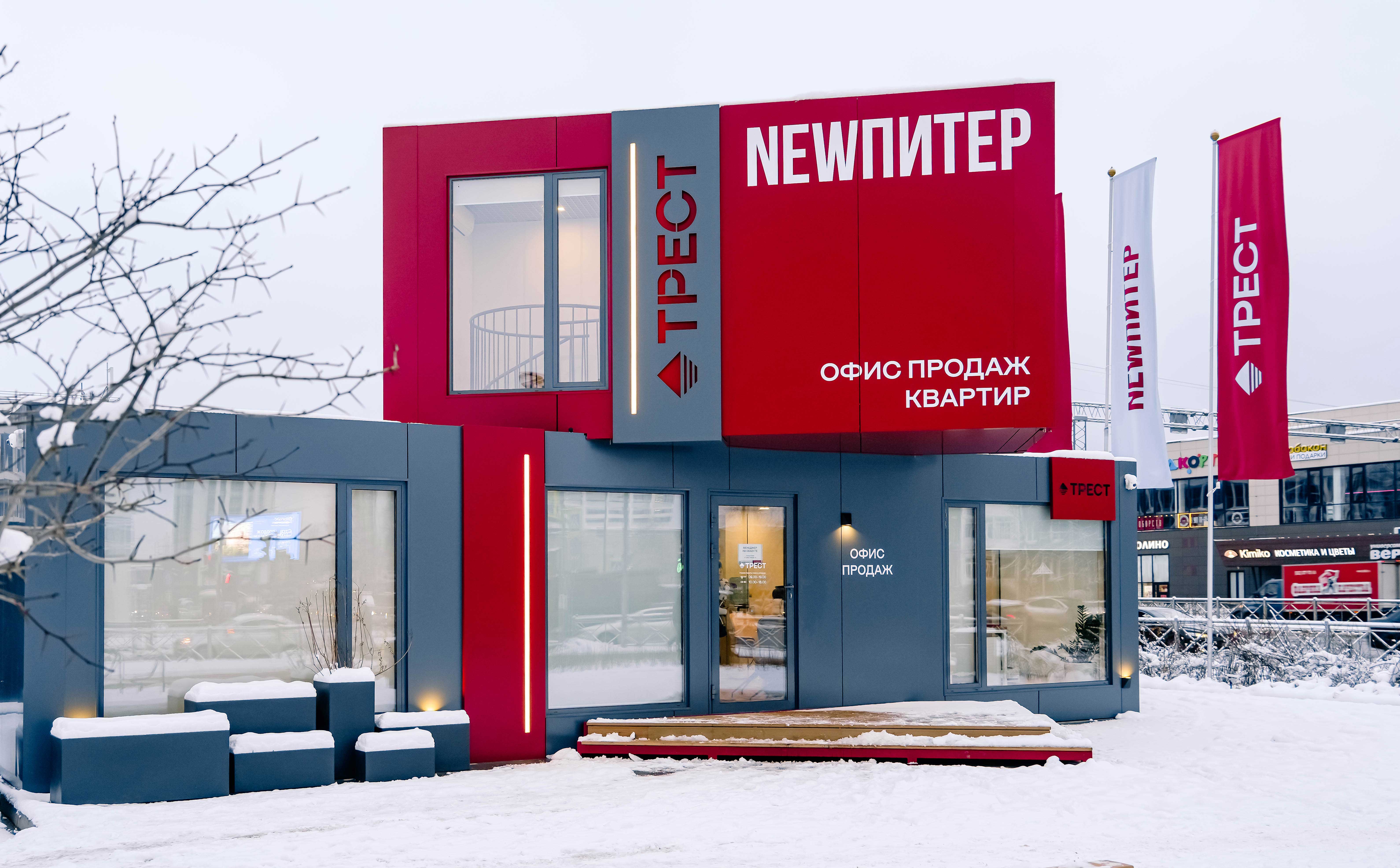 Новый двухуровневый модульный офис продаж ГК «ТРЕСТ» открылся в жилом квартале NEWПИТЕР на пересечении Красносельского шоссе и Невской улицы.