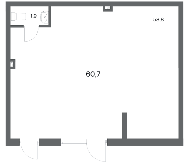 60.7 м2