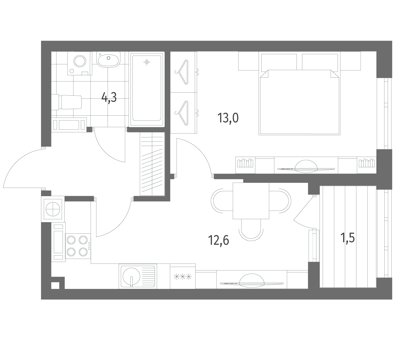 1-комнатная 35.1 м2