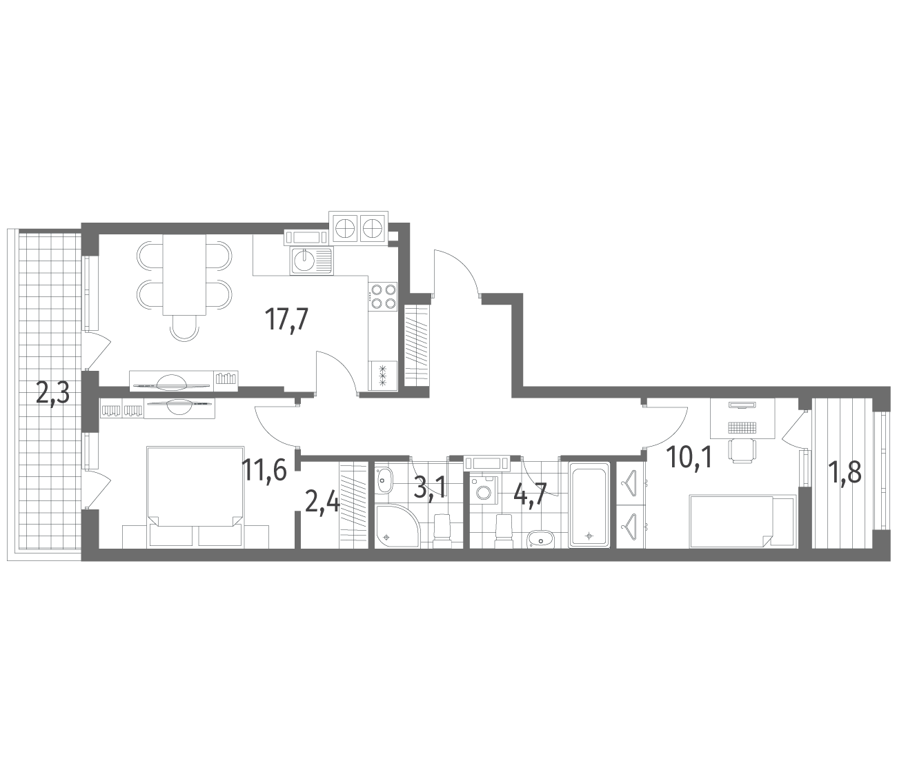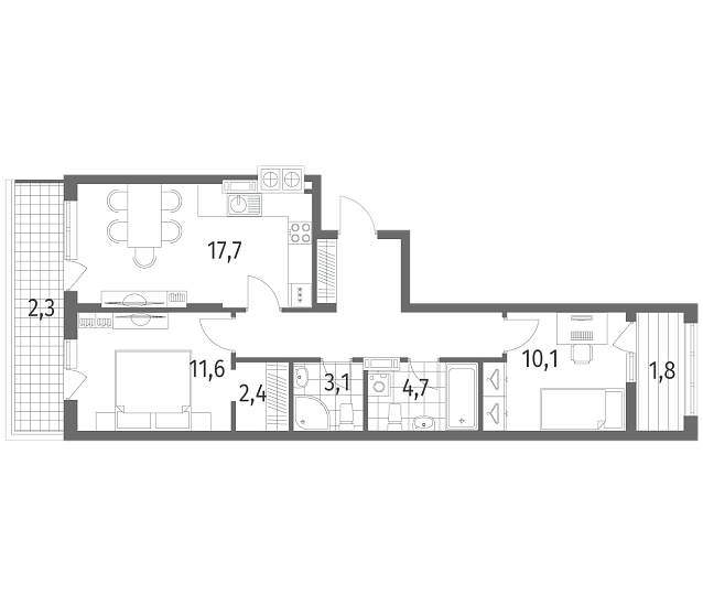 2-комнатная 65.3 м2
