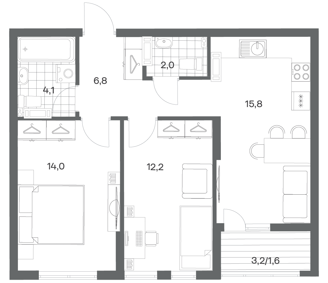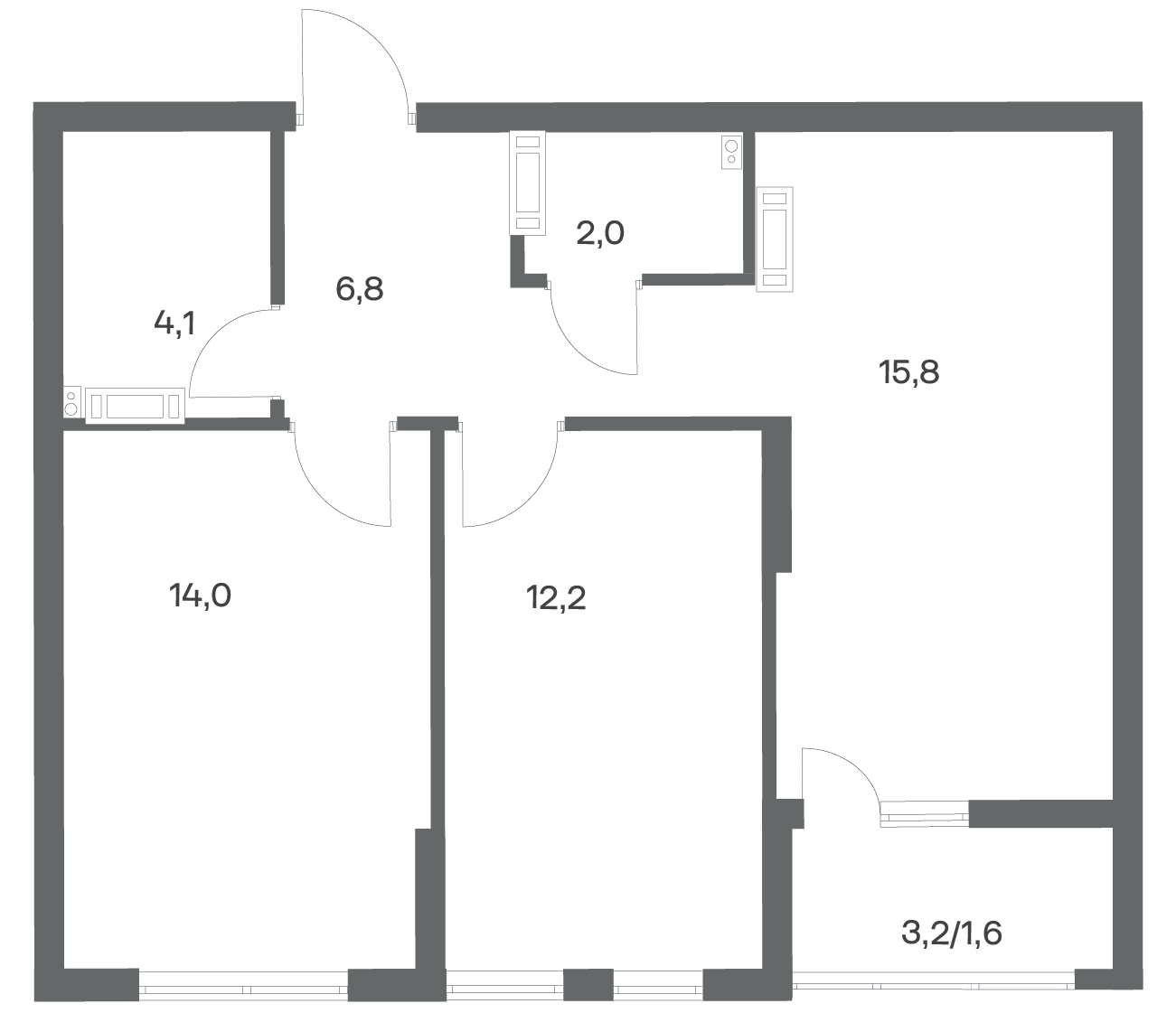 2-комнатная 56.5 м2