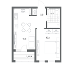 Корпус 2 | 1-комнатная | 38.7 м² | 15.6 м² | 8 |