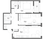 Корпус 2 | 1-комнатная | 35.3 м² | 12.8 м² | 6 |