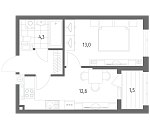 Корпус 2 | 1-комнатная | 39.9 м² | 15.6 м² | 4 |