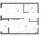 Корпус 2 | 1-комнатная | 42.5 м² | 15.9 м² | 3 |