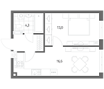Корпус 2 | 1-комнатная | 37.3 м² | 16.3 м² | 3 |