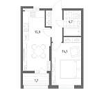 Корпус 2 | 1-комнатная | 39.9 м² | 15.6 м² | 2 |