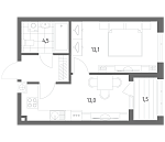 Корпус 1 | 1-комнатная | 34.6 м² | 14.9 м² | 8 |